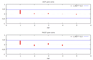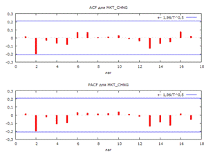 Коррелограмма временного ряда для доходности рынка в России