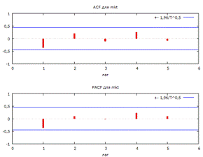 коэф. автокорреляции 1-го порядка для e: -0, 034