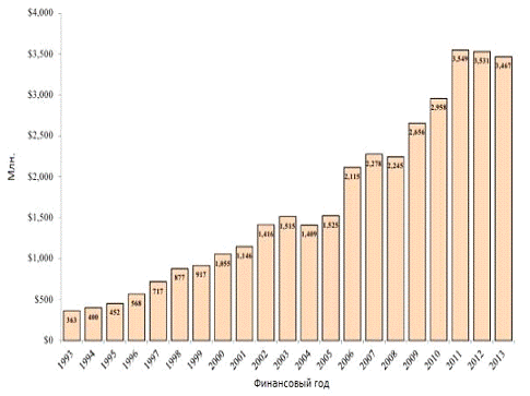 Рисунок 4. Бюджет Службы Пограничного Контроля США, 1993-2013