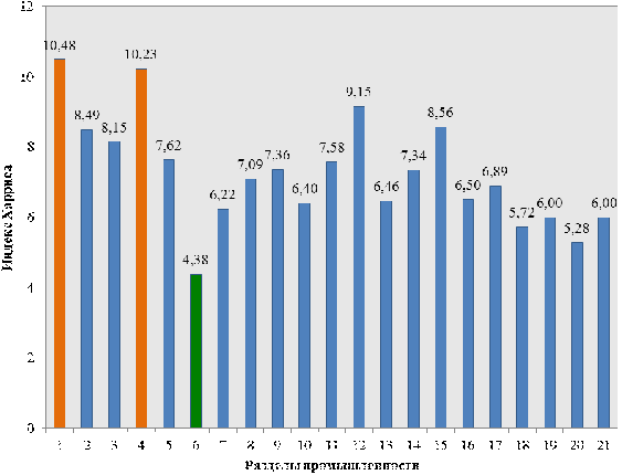разделением по 21 разделу товарной номенклатуры. Скорректированный коэффициент