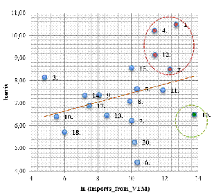 между странами-участницами зон свободной торговли на индекс Харриса с