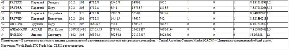 эффект на объемы двусторонней торговли стран-участниц региональных торговых