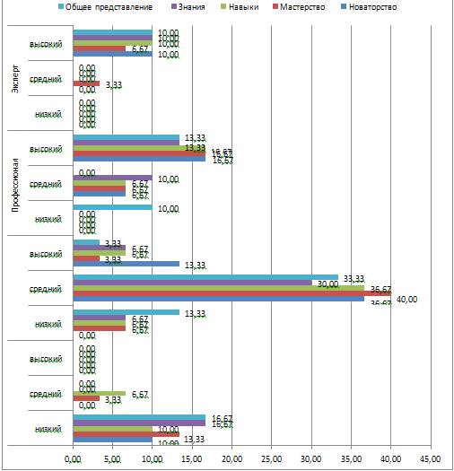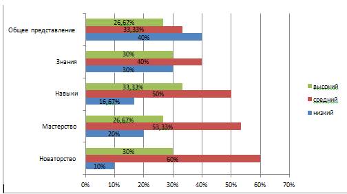 как представлен низкий уровень у 30% сотрудников. Также у сотрудников недостаточно развито общее