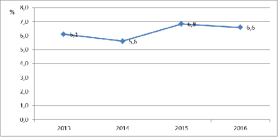 Рисунок 4.3 Уровень безработицы в Вологодской области