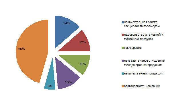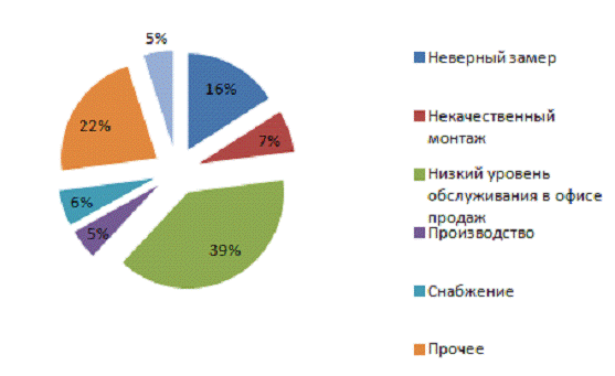 Рис. 1 Процентное распределение причин рекламаций за 2015 год