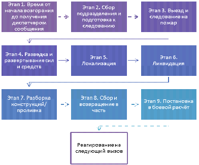 возгорания до постановки сил и средств на боевой расчёт после ликвидации) и