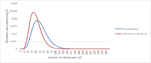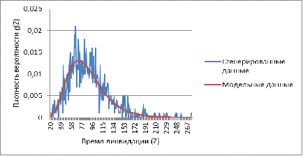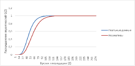 Функция распределения вероятности общей длительности проекта ликвидации