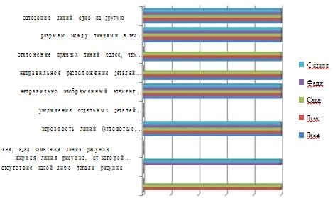 линий (угловатые, дрожащие), 4) неправильно изображенный элемент