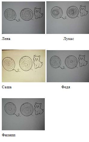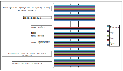 проведение по одному и тому же месту рисунка -8) линии слабые -5