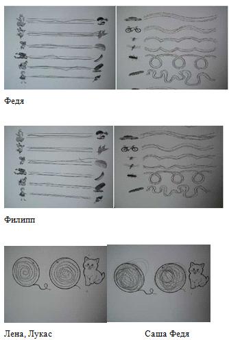 линии дрожащие -12, линии прерывистые -10, линии с сильным нажимом - 2,