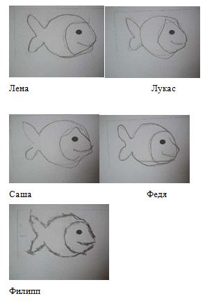 линий (угловатые, дрожащие), 3)неправильно изображенный элемент рисунка,