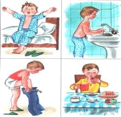 устанавливают последовательность событий, раскладывают картинки в нужном