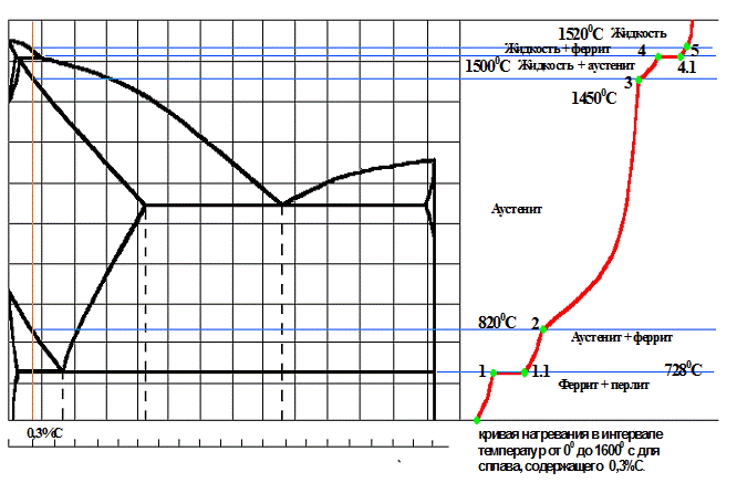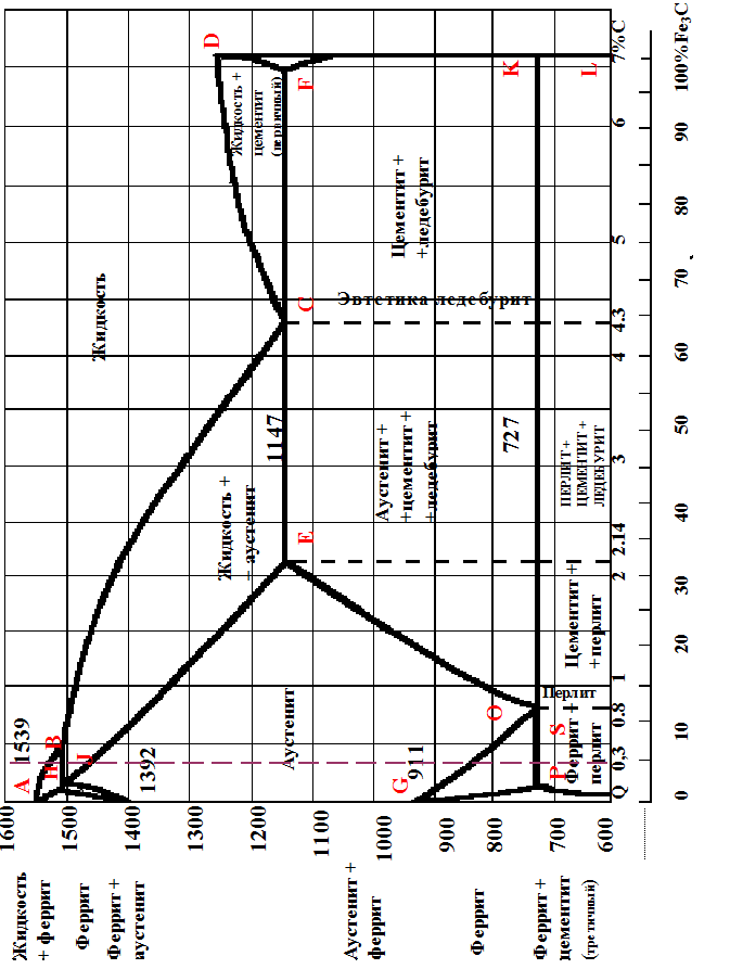 диаграмму состояния железо – карбид железа, спишите превращения и постройте
