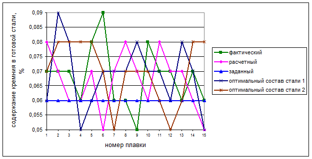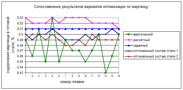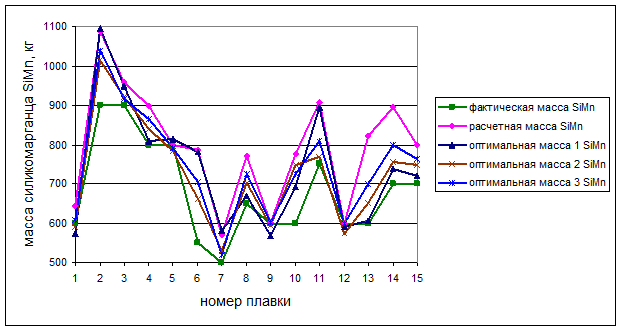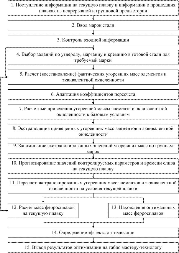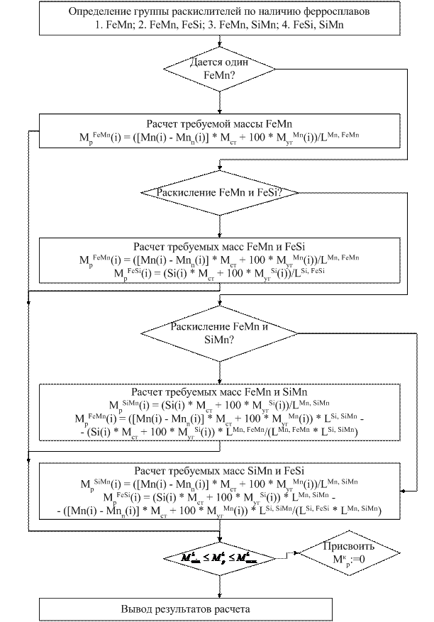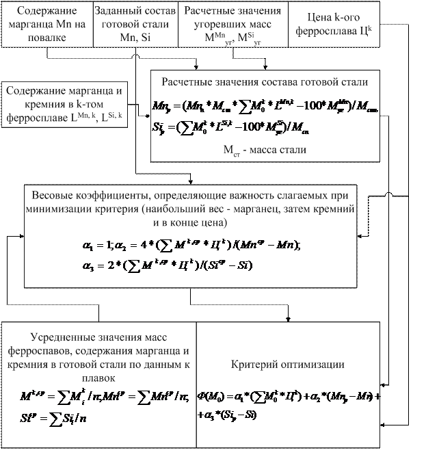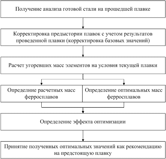 элементов, расчетные и оптимальные массы ферросплавов, процедура адаптации
