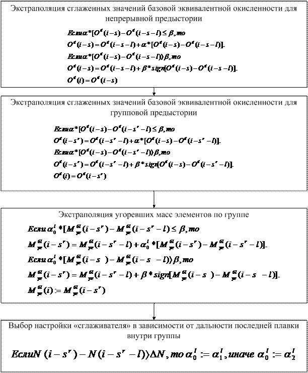 коэффициентов пересчета, прогнозирование контролируемых параметров и времени
