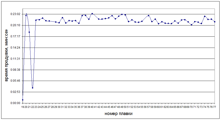 подачи кислорода, положения фурмы над расплавленным металлом, длительности и