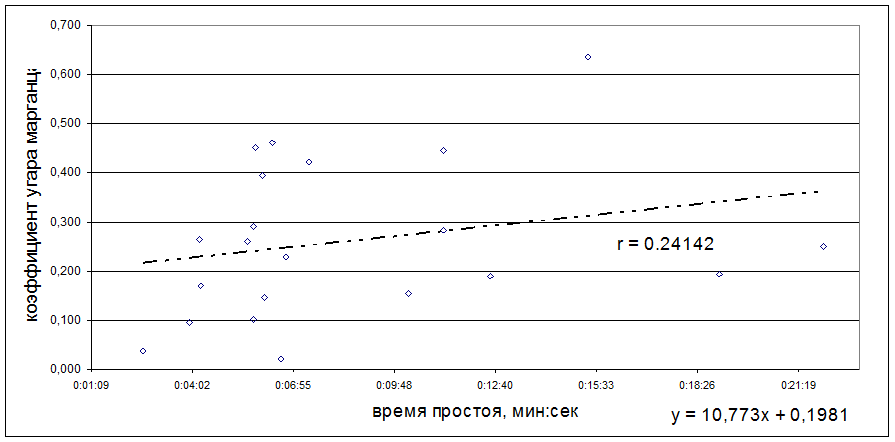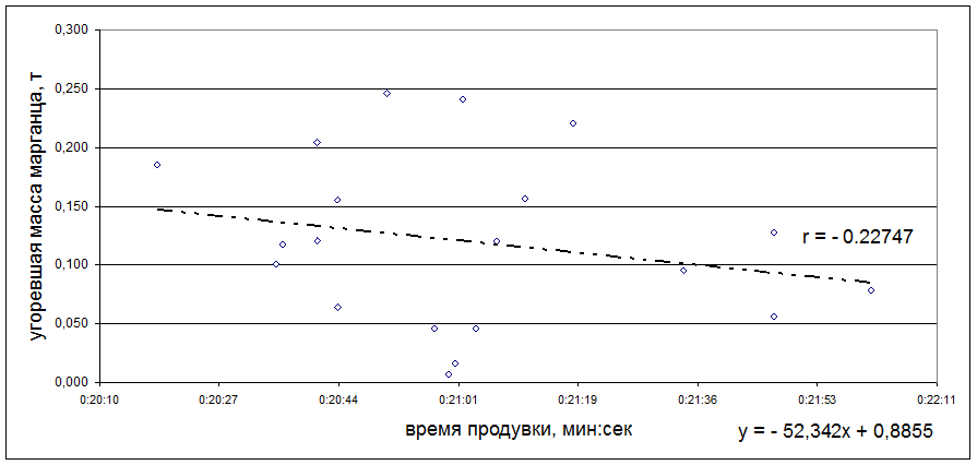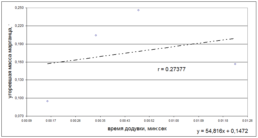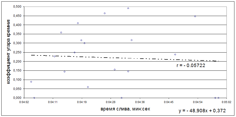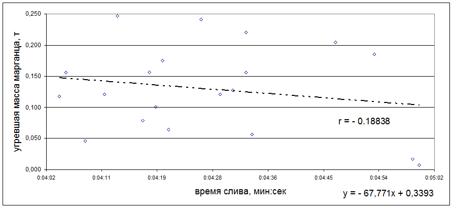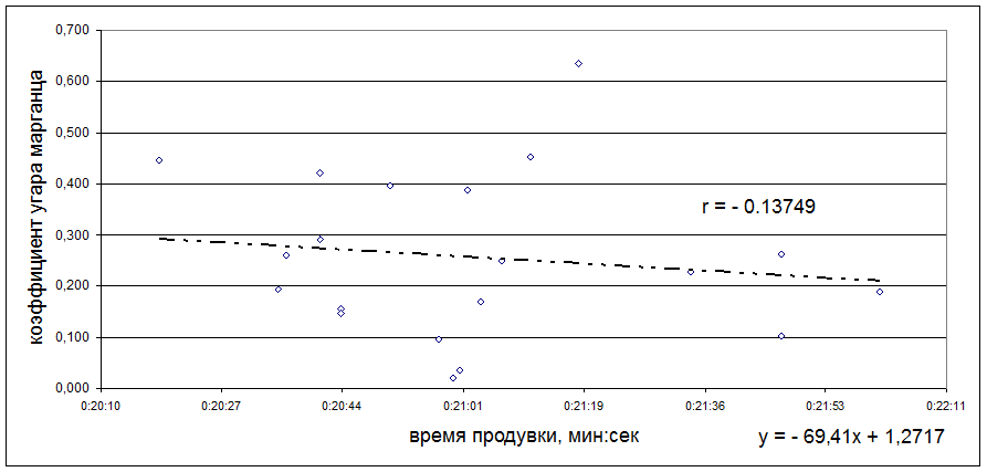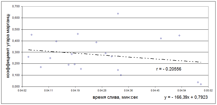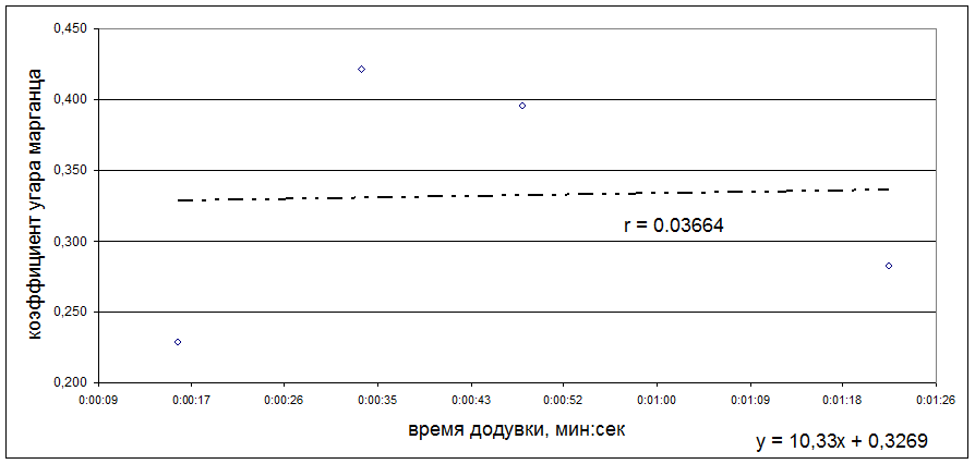 слива и времени додувки на эквивалентную окисленность (0) и угар 1-ого