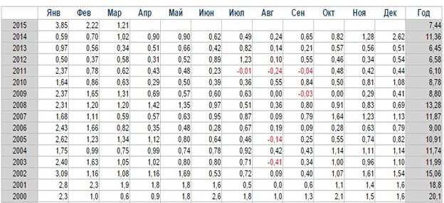 №1. Изменения инфляции в РФ за 2000-2014 гг.
