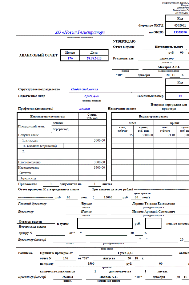 «Учёт и аудит расчётов с подотчетными лицами АО «Новый Регистратор»