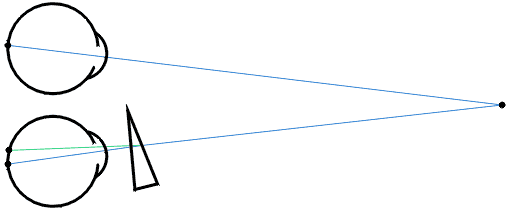 призматический эффект, когда, например, центры линз смещены в сторону от