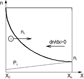 существует положительный градиент концентрации (см. рис.2) основных носителей –