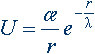 взаимодействия, а показатель экспоненты –r/λ – радиус действия сил. Это выражение