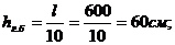hв. б=(1/12...1/20)lв. б; принимаем hв.