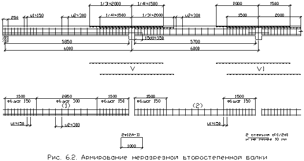 (каркасы (2), рис. 6.2) поперечные стержни диаметром 6 мм с шагом 15 и 30 см,