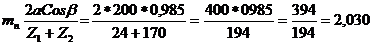 нормальный модуль, межосевого расстояния и числу зубьев шестерни