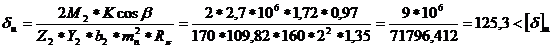 находим расчётное напряжение изгиба в опасном сечении зуба колеса по формуле: