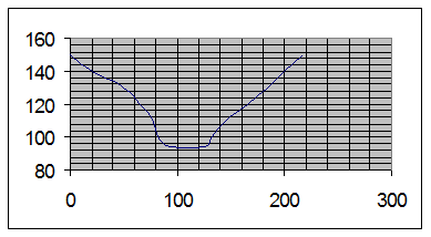 плотины взят по планшету в месте, где горизонтали, отметки которых равны