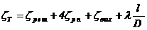 cумму местных коэффициентов потери напора ищется по формуле ( 1.8 ) , применяя