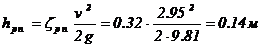 cумма местных коэффициентов потери напора была найдена в п.1 по формуле ( 1.8 )
