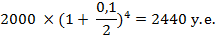 вклада в сумме 2000 у.е. к концу 2 года возрастет до: