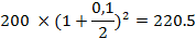 в течении 2-х лет в конце каждого года получаем %-й доход 200 у.е.