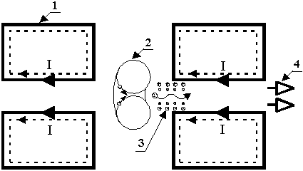 На Рис.3 показаны: 1) секционированная тороидальная катушка с током I