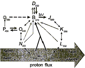 Фотохимический цикл БР состоит из отдельных интермедиатов, которые могут быть