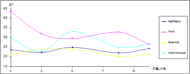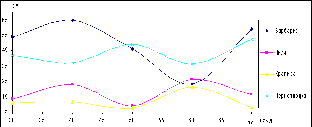 4. Найден оптимальный температурный диапозон, обеспечивающий максимально возможный выход цвета : для барбариса, крапивы, черноплодки