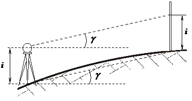 направлению визирного луча отмечают точку К – это проекция низа сооружения.