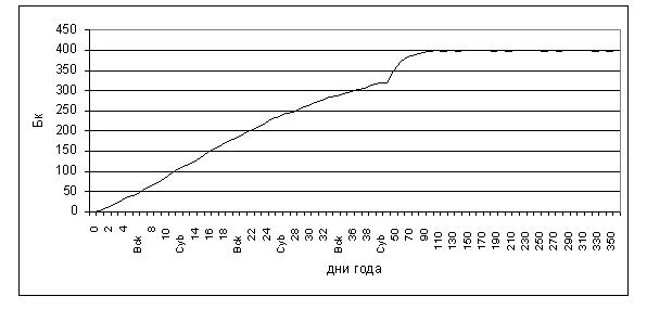 Рис.2. Накопление трития в организме работника с учётом