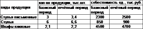 продукции показывает, что себестоимость столов возросла на 8,7%, стульев