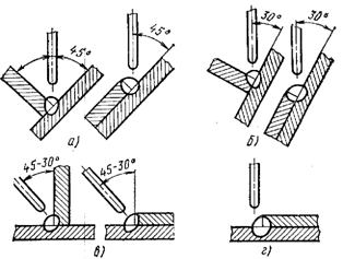 потолочные швы обычно выполняют правым способом сварки, вертикальные снизу