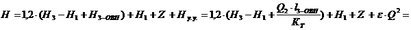 в точке их врезки будет не более H = 225-58 = 167 м. Теперь используем