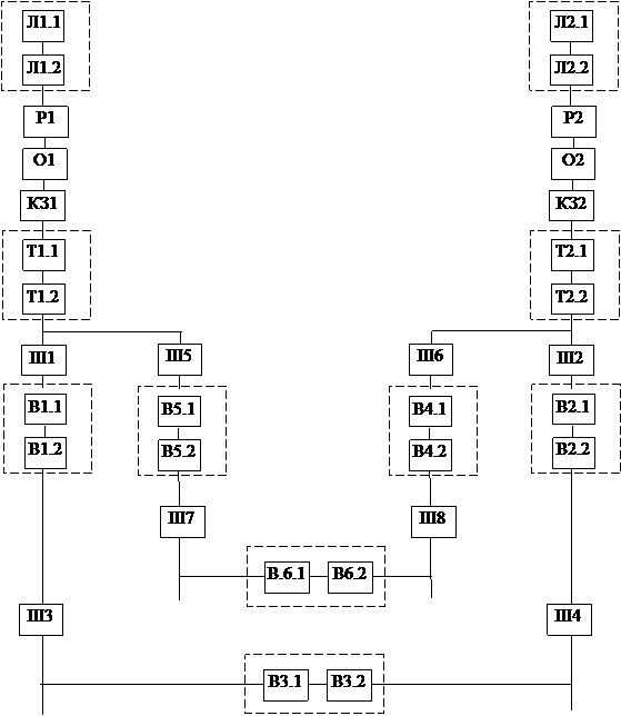 КЗ1, Т1.1, Т1.2, Ш1, В1.1, В1.2, Ш3 на эквивалентный элемент Э1 см рис.4.