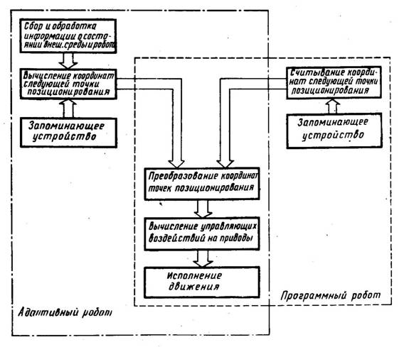 стороны, если существует канал связи адаптивного робота с ЭВМ верхнего уровня и