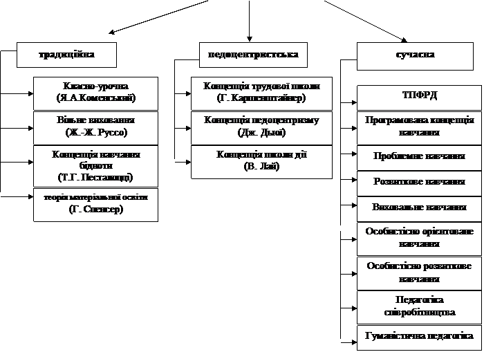 основні дидактичні концепції, приділивши увагу концепціям Гербарта і Дж. Дьюї.