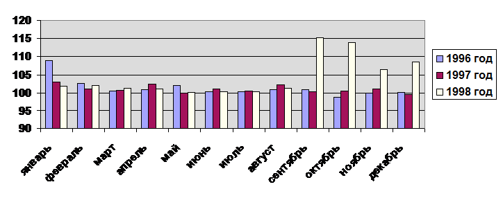 Ханты-Мансийскому Автономному Округу в январе - декабре 1996-1998г.г. (в