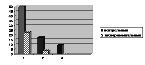 допущенных учащимися контрольного и экспериментального класса после