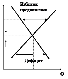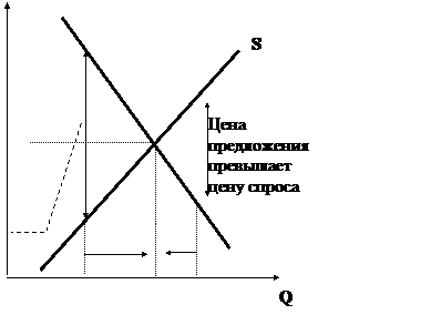 спроса; б) вследствие уменьшения предложения. Новое равновесие