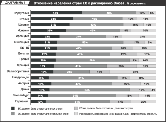 ЕС, доля сторонников расширения лишь немногим превышает треть. Довольно